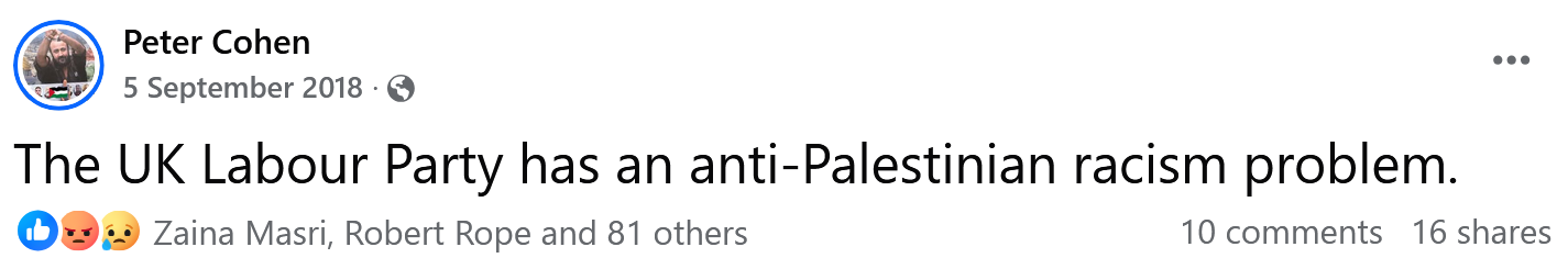 A day after the NEC vote, one of the then administrators of Palestine Live posted a reaction to it. The message was simple and stark: “The Labour Party has an anti-Palestinian racism problem”: